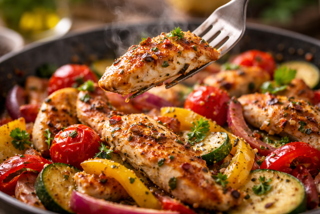 If you’re looking for a quick, healthy, and flavor-packed meal that fits perfectly into a busy lifestyle, this Mediterranean Chicken Stir Fry is about to become your new favorite. Inspired by the vibrant flavors of the Mediterranean, this one-pan dish combines tender chicken, colorful vegetables, heart-healthy olive oil, and aromatic herbs into a satisfying meal that’s as nutritious as it is delicious.