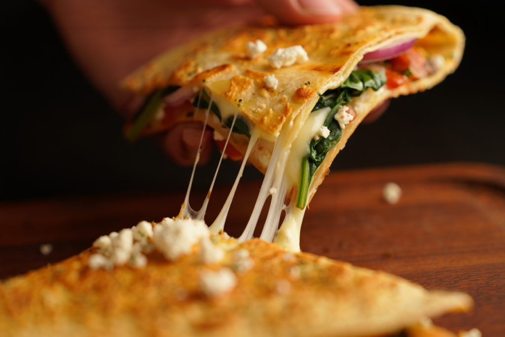 Mediterranean quesadillas with spinach, feta, mozzarella, and red onion are simple, fresh, and full of flavor. They feel light but still satisfying. You can serve them for lunch, dinner, or even slice them smaller for party appetizers.